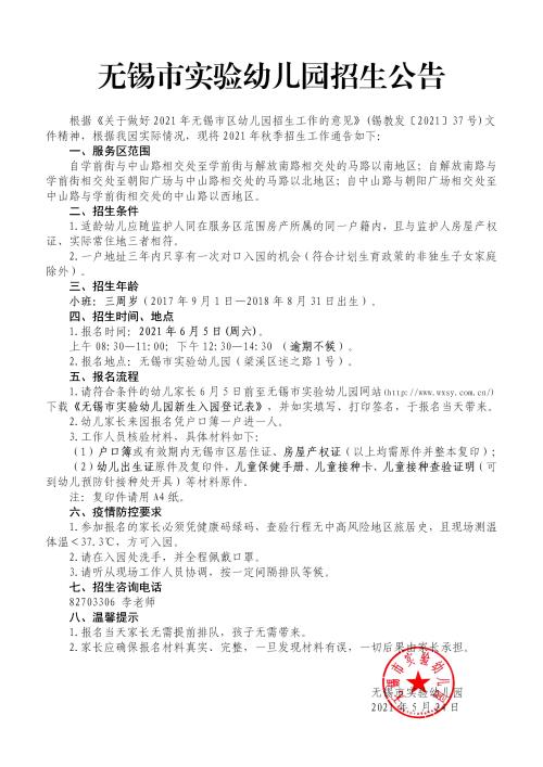 请点击下载:无锡市实验幼儿园新生入园登记表(样表)